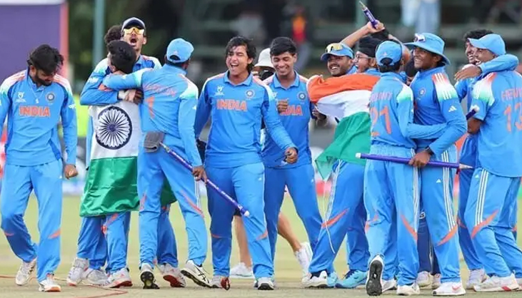 অনূর্ধ্ব-১৯ বিশ্বকাপের ফাইনালে ইংল্যান্ডকে ১০০ রানের বিশাল ব্যবধানে হারিয়ে চ্যাম্পিয়ন হলো ভারতের যুবারা। ম্যাচের শুরুতে ব্যাট করতে নেমে বৈভব সূর্যবংশীর ঝড়ো সেঞ্চুরিতে ৫০ ওভারে ৯ উইকেটের বিনিময়ে ৪১১ রান করে ভারত। জবাবে ৩১১ রানে গুটিয়ে যায় ইংল্যান্ড অনূর্ধ্ব-১৯ দলের ইনিংস।