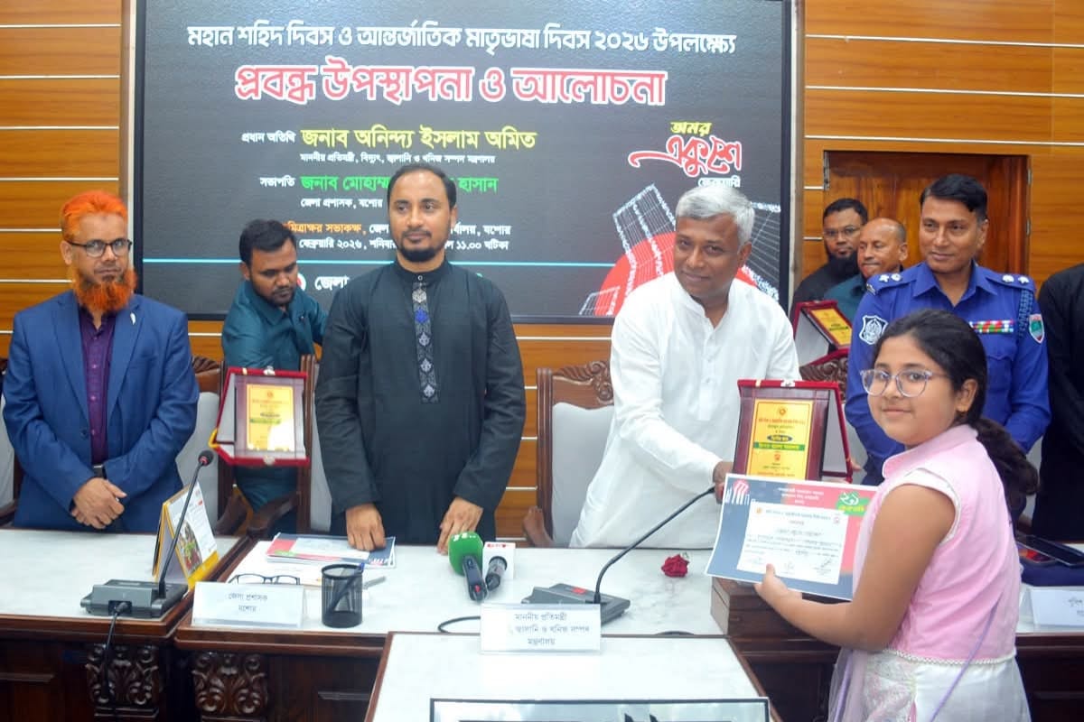 তিনি আজ শনিবার যশোর জেলা প্রশাসকের সম্মেলনকক্ষে মহান শহিদ দিবস ও আন্তর্জাতিক মাতৃভাষা দিবস উপলক্ষ্যে প্রবন্ধ উপস্থাপন, আলোচনা সভা ও পুরস্কার বিতরণ অনুষ্ঠানে প্রধান অতিথির বক্তৃতায় একথা বলেন।