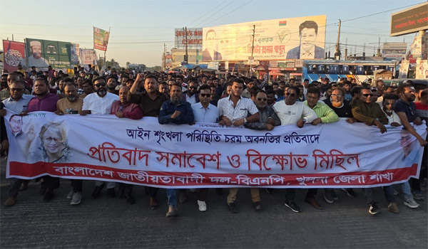 গতকাল মঙ্গলবার বিকালে জিরোপয়েন্ট এলাকায় বিক্ষোভ মিছিল পূর্ব সংক্ষিপ্ত সমাবেশে তিনি এসব কথা বলেন। খুলনার আইনশৃঙ্খলার চরম অবনতি, খুন, ছিনতাই রাহাজানি বৃদ্ধির প্রতিবাদে এ কর্মসূচি পালিত হয়।