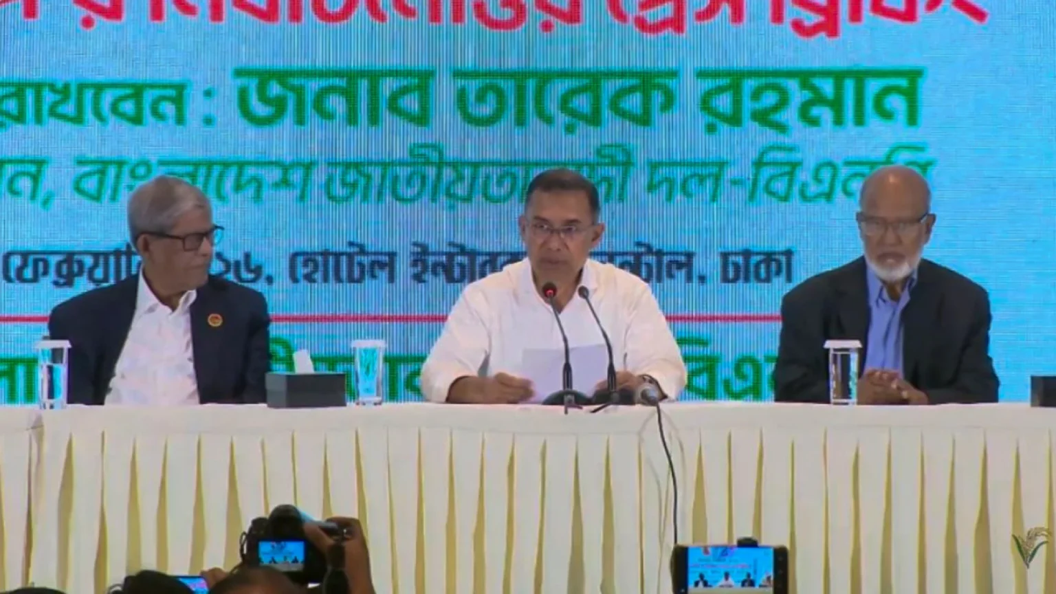 তারেক রহমান বলেন, আপনাদের স্বতঃস্ফূর্ত অংশগ্রহণে দেড় দশকেরও বেশি সময় পর দেশে পুনরায় জনগণের সরাসরি ভোটে জবাবদিহিমূলক সংসদ ও সরকার প্রতিষ্ঠিত হতে যাচ্ছে। আর কোনো অপশক্তি যাতে দেশে ফ্যাসিবাদ কায়েম করতে না পারে সেজন্য আমাদের ঐক্যবদ্ধ থাকতে হবে এবং থাকবো। জামায়াত ইসলাম, এনসিপি, ইসলামী আন্দোলন বাংলাদেশ, জমিয়তে ইসলাম, গণঅধিকার পরিষদসহ ৫১টি রাজনৈতিক দল এ নির্বাচনে অংশ নিয়েছি। প্রতিটা রাজনৈতিক দলকে আন্তরিক অভিনন্দন জানাই।