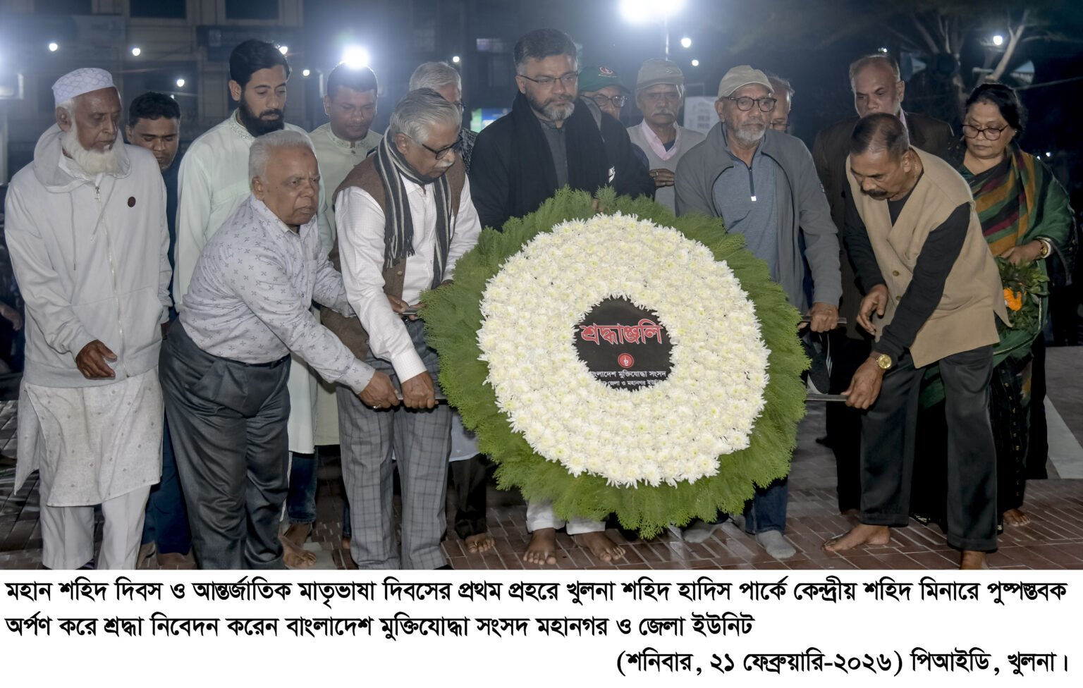 জাতির শ্রেষ্ঠ সন্তান বীর মুক্তিযোদ্ধাদের পক্ষে বাংলাদেশ মুক্তিযোদ্ধা সংসদ খুলনা মহানগর ও জেলা কমান্ড শহীদ মিনারে ফুল দিয়ে শ্রদ্ধা নিবেদন করে।
