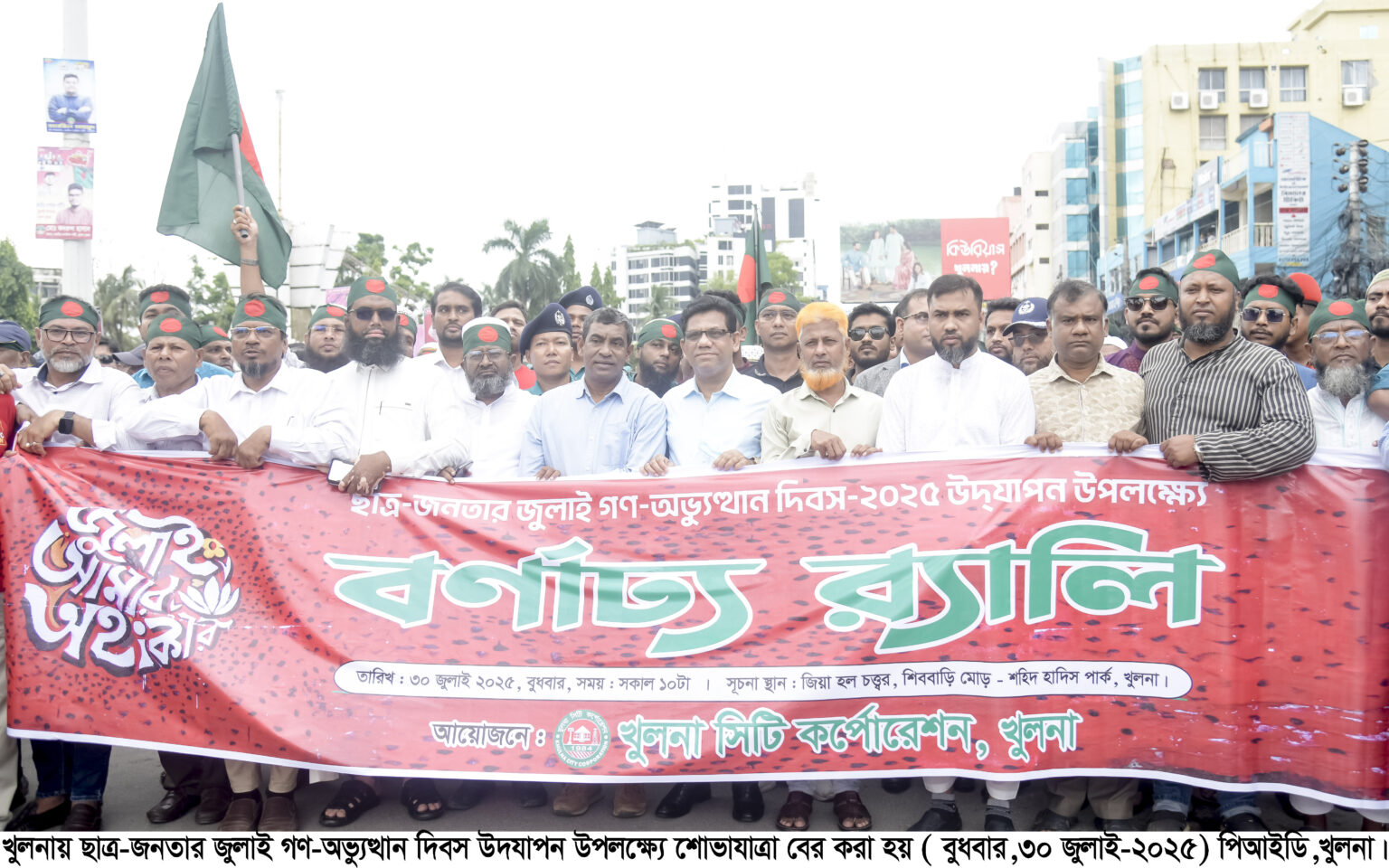 জুলাই গণঅভ্যুত্থানের বর্ষপূর্তিতে মাসব্যাপী জুলাই পুনর্জাগরণ শীর্ষক অনুষ্ঠানমালার ধারাবাহিকতায় খুলনা সিটি কর্পোরেশনের আয়োজনে শিববাড়ি মোড় থেকে আজ (বুধবার) সকালে ছাত্র-জনতার জুলাই গণ-অভ্যুত্থান দিবসের উপলক্ষ্যে বর্ণাঢ্য শোভাযাত্রার উদ্বোধন করা হয়। প্রধান অতিথি হিসেবে শোভাযাত্রাটির উদ্বোধন করেন খুলনার বিভাগীয় কমিশনার ও কেসিসি প্রশাসক মোঃ ফিরোজ সরকার।