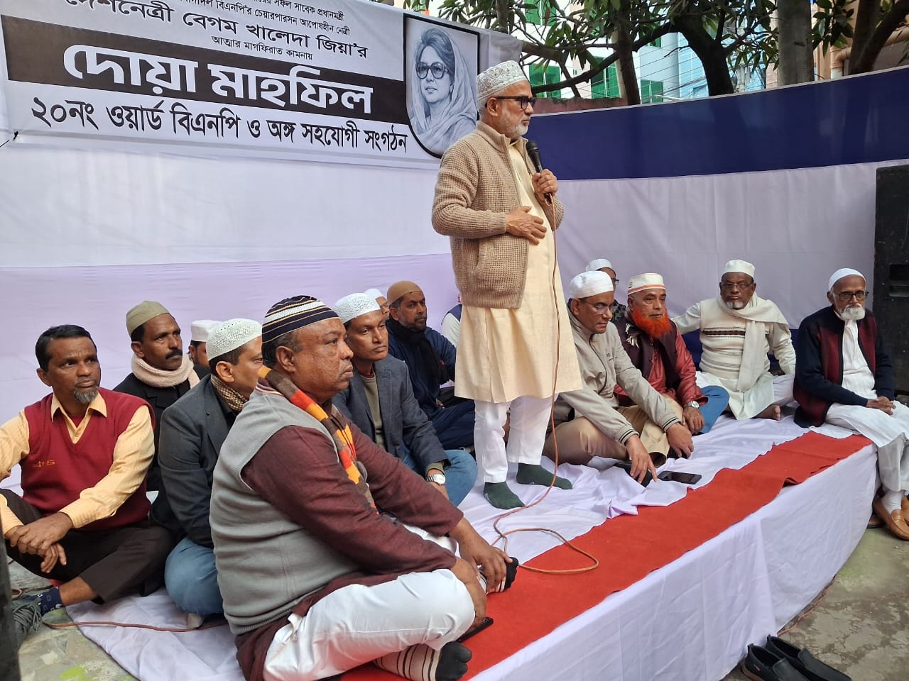 রোববার (১১ জানুয়ারি ২০২৬) ২০ নং ওয়ার্ডে আয়োজিত এ দোয়া মাহফিলে প্রধান অতিথি হিসেবে উপস্থিত ছিলেন খুলনা-২ আসনের সাবেক সংসদ সদস্য নজরুল ইসলাম মঞ্জু।