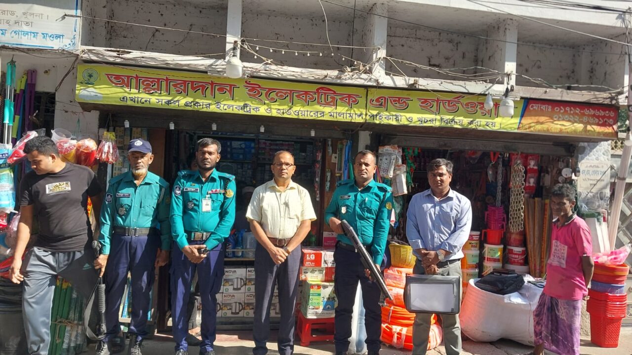 জেলার রুপসা ও তেরখাদা উপজেলার কোলা বাজার ও দুর্জনীমহন এলাকায় অভিযান চালিয়ে নুর জাহান মুড়ি ফ্যাক্টরি কে পণ্যের মোড়ক যথাযথ ব্যবহার না করার অপরাধে ৪ হাজার টাকা ও একই অপরাধে সততা বেকারি কে ১০ হাজার টাকা, মায়ের দোয়া জিহাদ হোটেল কে অবৈধ প্রক্রিয়ায় খাদ্য উৎপাদন করার অপরাধে ৩ হাজার টাকা এবং মেসার্স শাহীন স্টোরকে মেয়াদ উত্তীর্ণ পণ্য সংরক্ষণ ও বিক্রয় করার অপরাধে ১ হাজার ৫ শত টাকা জরিমানা আরোপ করা হয়। এ সময় মোট ০৪ টি প্রতিষ্ঠান-কে ১৮ হাজার ৫ শত টাকা জরিমানা আরোপ ও আদায় করা হয়।