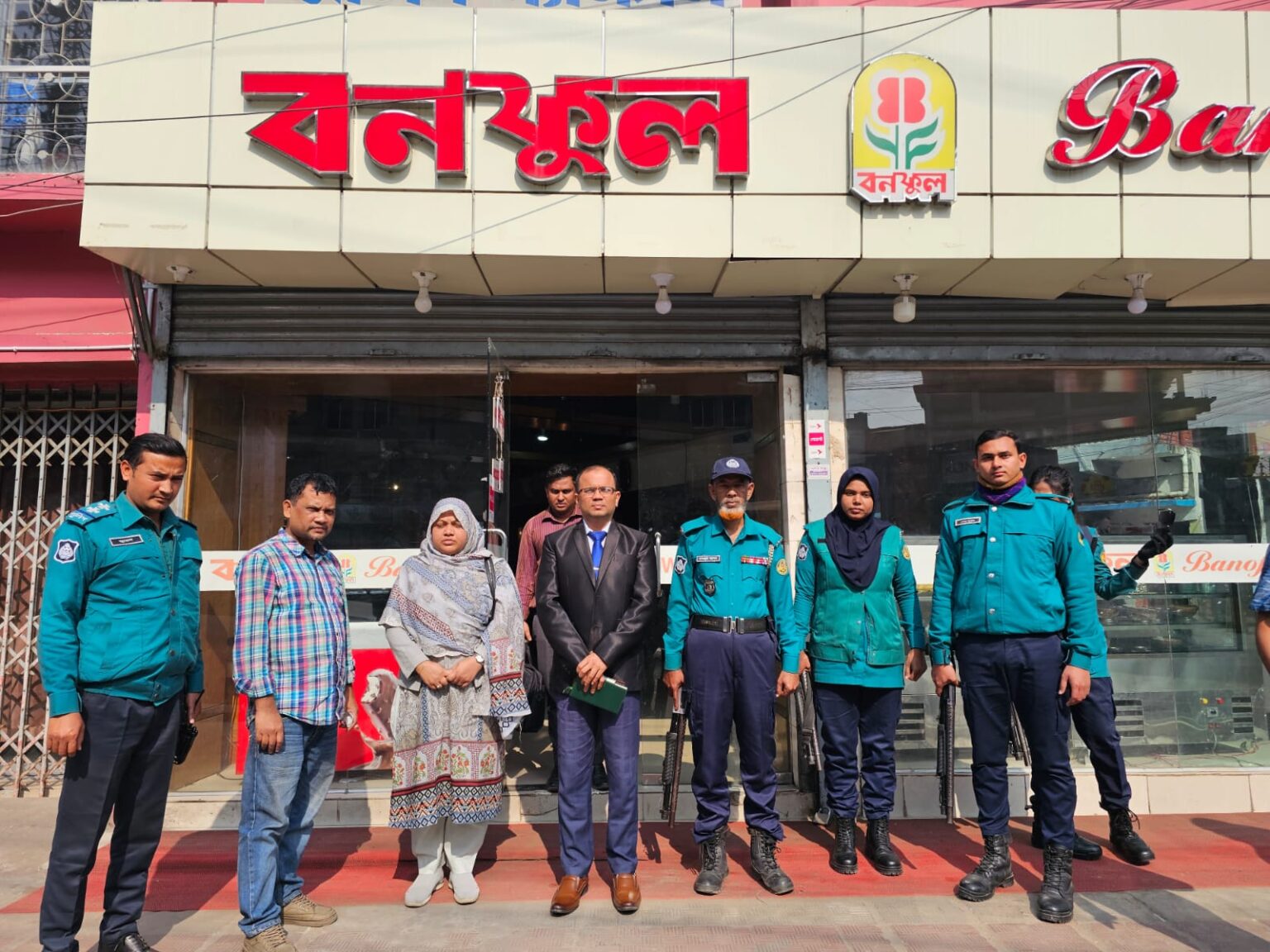 খুলনা বিভাগীয় কার্যালয়ের উপপরিচালক জনাব মোহাম্মদ সেলিম এর খুলনা মহানগরীর নেতৃত্বে সদর থানার সাতরাস্তা এলাকায় অভিযান চালিয়ে বনফুল কে পণ্যের মোড়ক যথাযথ ব্যবহার না করার অপরাধে ৬ হাজার টাকা জরিমানা আরোপ করা হয়। এসময় ১টি প্রতিষ্ঠান-কে মোট ৬ হাজার টাকা জরিমানা আরোপ ও আদায় করা হয়