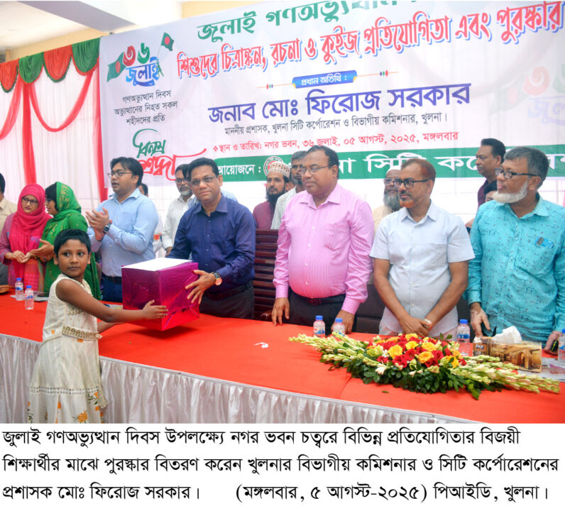 জুলাই-শহীদদের স্মৃতির প্রতি গভীর শ্রদ্ধা নিবেদনের মধ্য দিয়ে আজ (মঙ্গলবার) খুলনায় যথাযোগ্য মর্যাদায় জুলাই গণঅভ্যুত্থান দিবস-২০২৫ পালন করা হয়।