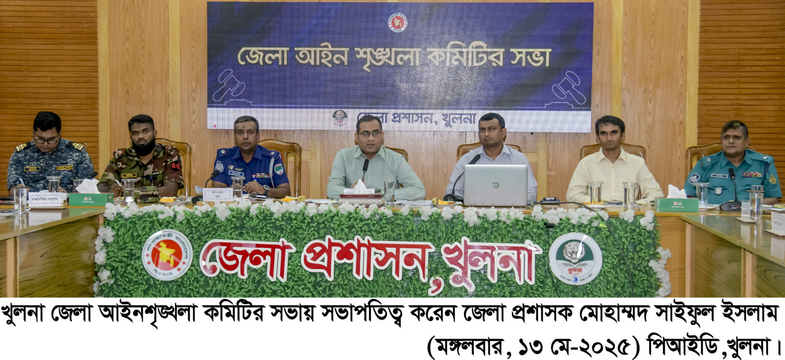খুলনা জেলা আইনশৃঙ্খলা কমিটির মে মাসের সভা গত মঙ্গলবার সকালে জেলা প্রশাসক মোহাম্মদ সাইফুল ইসলামের সভাপতিত্বে তাঁর সম্মেলনকক্ষে অনুষ্ঠিত হয়।