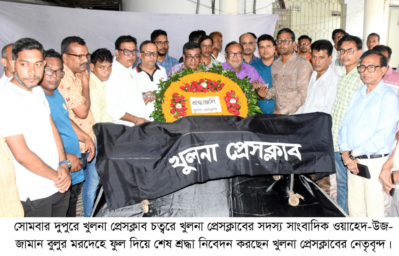 খুলনা প্রেসক্লাবের স্থায়ী সদস্য ও সংবাদ প্রতিদিন পত্রিকার খুলনা ব্যুরো প্রধান ওয়াহেদ-উজ-জামান বুলুর মরদেহে পুষ্পমাল্য অর্পণ করে শেষ শ্রদ্ধা নিবেদন করা হয়েছে।