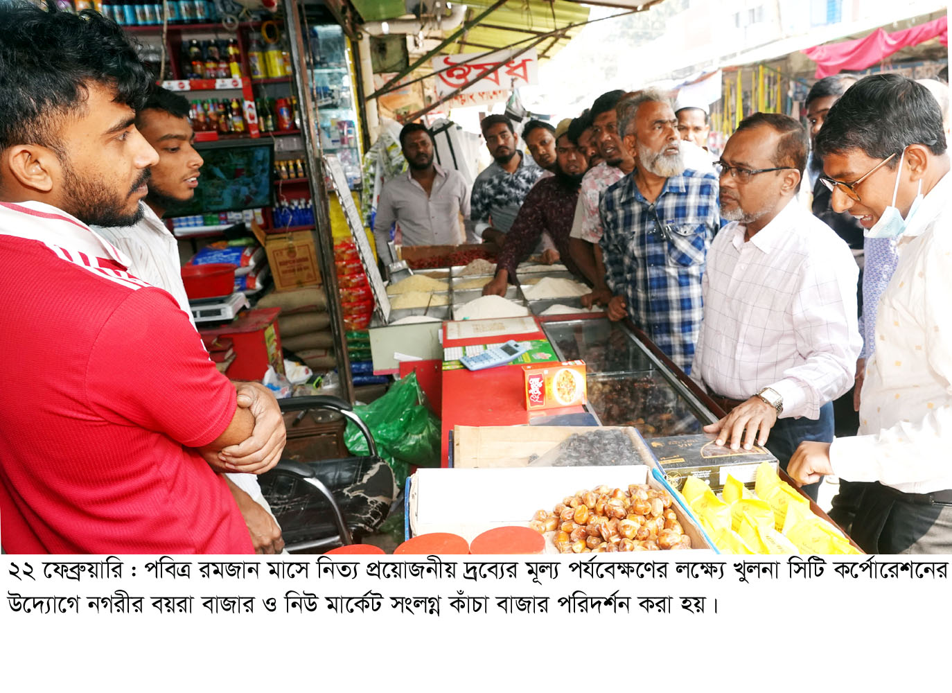 পবিত্র রমজান মাসে নিত্য প্রয়োজনীয় দ্রব্যের মূল্য পর্যবেক্ষণের লক্ষ্যে খুলনা সিটি কর্পোরেশনের উদ্যোগে নগরীর বয়রা বাজার ও নিউ মার্কেট সংলগ্ন কাঁচা বাজার পরিদর্শন করা হয়।
