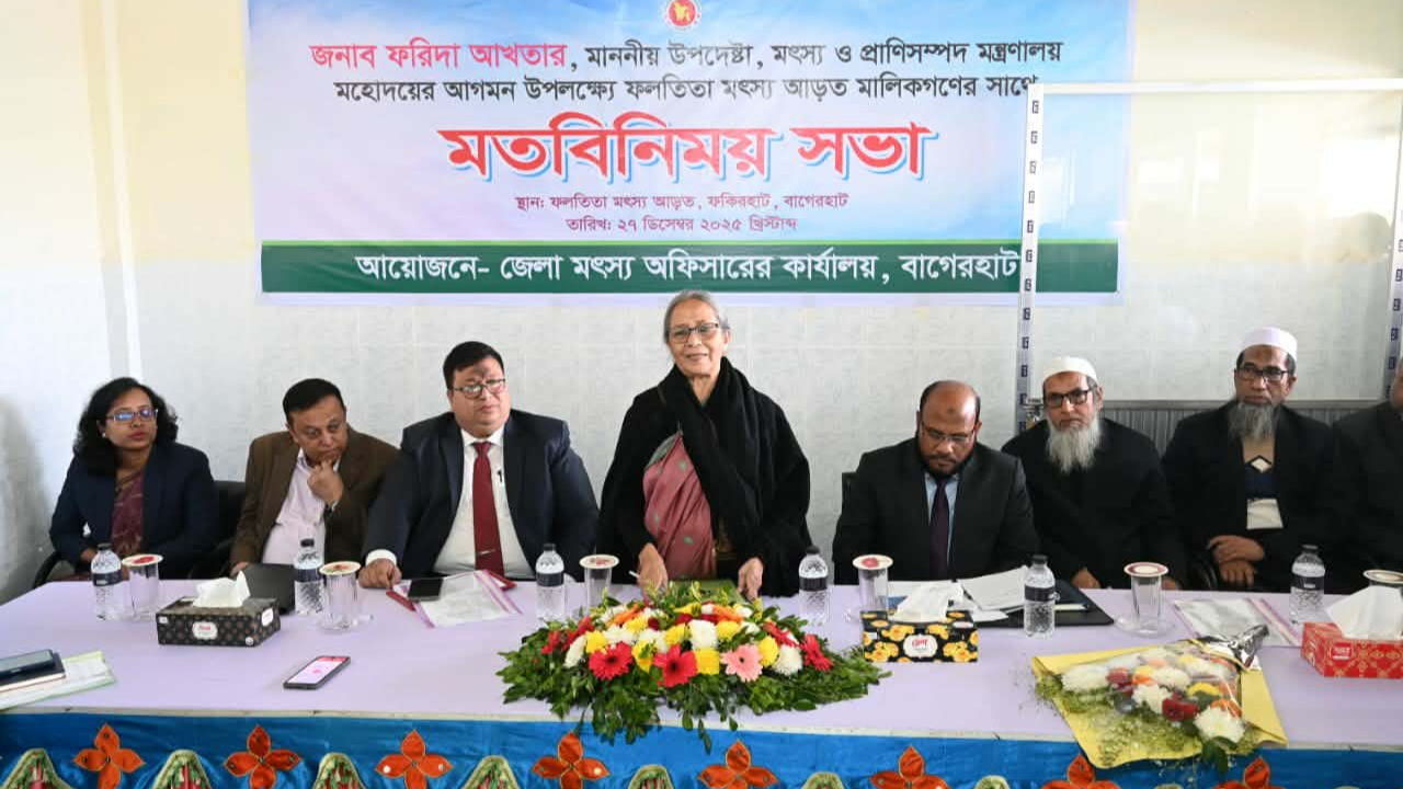 শনিবার (২৭ ডিসেম্বর) সকালে বাগেরহাটের ফকিরহাট উপজেলার ফলতিতা মৎস্য অবতরণ কেন্দ্র পরিদর্শন ও আড়ত মালিকদের সঙ্গে মতবিনিময় সভায় এসব কথা বলেন তিনি।