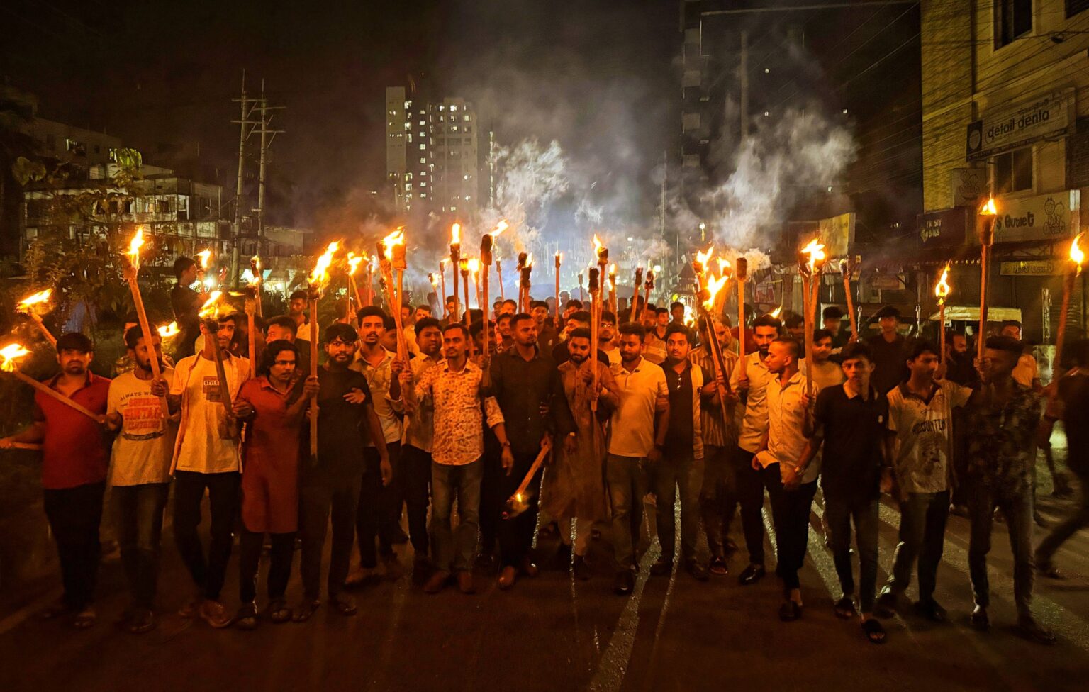 রাজধানীর পুরান ঢাকায় জগন্নাথ বিশ্ববিদ্যালয় শাখা ছাত্রদলের সদস্য মো. জুবায়েদ হোসেন হত্যার প্রতিবাদে খুলনা নগরীতে ছাত্রদল এক মশাল মিছিল করেছে। রবিবার রাতে নগরীর ময়লাপোতা চত্বর থেকে শুরু হয়ে মিছিলটি নিরালা মোড় পর্যন্ত যায়।