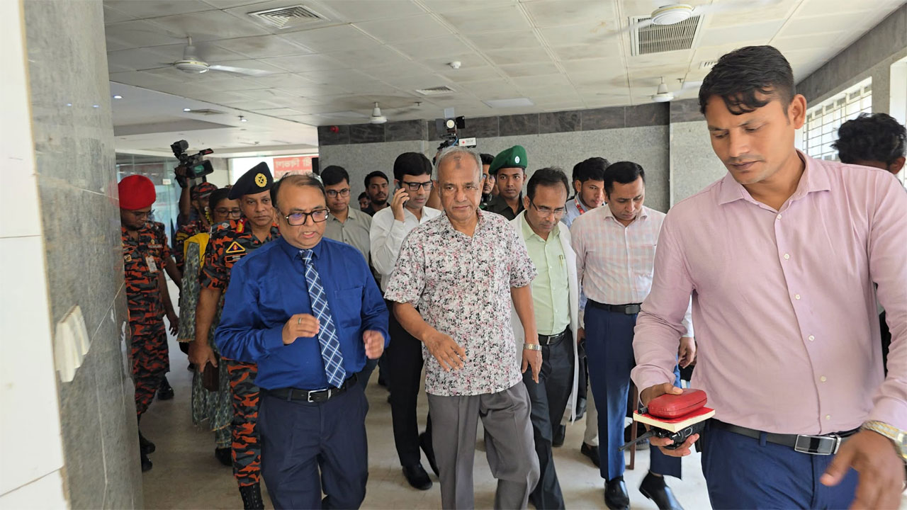 স্বরাষ্ট্র উপদেষ্টা বলেন, আপনারা জানেন গতকাল (সোমবার) একটি বড় দুর্ঘটনা ঘটেছে। সেখানে আমাদের চারজন ফায়ার সার্ভিসের কর্মী দগ্ধ হয়েছেন। তাদের মধ্যে দুজনের দগ্ধের পরিমাণ বেশি হওয়ায় তাদের অবস্থা আশঙ্কাজনক এবং একজনের দগ্ধের পরিমাণ একটু কম। এই হাসপাতালটি একটি আন্তর্জাতিক মানের হাসপাতাল। এখানকার চিকিৎসা খুবই ভালো। এখানকার চিকিৎসকরা সর্বোচ্চ চেষ্টা করছেন। আপনারা আল্লাহর কাছে দোয়া করবেন যেন তাড়াতাড়ি সুস্থ হয়ে যান তারা। দগ্ধদের চিকিৎসায় যত ধরনের সহযোগিতা লাগে, সমস্ত সহযোগিতা দেওয়া হবে ফায়ার সার্ভিস, স্বরাষ্ট্র মন্ত্রণালয় ও সরকারের পক্ষ থেকে।