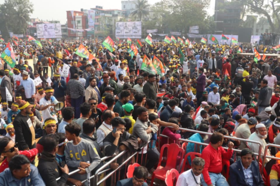 খুলনার খালিশপুর প্রভাতী স্কুল মাঠে বিএনপির চেয়ারপাসন তারেক রহমানের নির্বাচনী জনসভায় খন্ডখন্ড মিছিল নিয়ে আসতে শুরু করেছেন দলের নেতাকর্মীরা। আজ সোমবার দুপুর ১২ টায় জনসভা শুরু হবে। এ জনসভায় তারেক প্রধান অতিথির বক্তব্য দেবেন। এর পর সেখান থেকে তিনি যশোরের জনসভায় যোগদান করবেন।তারেক রহমানের খুলনায় আগমনকে কেন্দ্র ও তার নিরাপত্তার জন্য খুলনার প্রশাসন তিন স্তরের নিরাপত্তা গ্রহণ করেছে। রাত থেকে খালিপুরের বিভিন্ন রাস্তা ও মোড়ে পুলিশ অবস্থান নেন। আজ খুব সকাল থেকে খুলনা, বাগেরহাট, সাতক্ষীরাসহ বিভিন্ন এলাকা থেকে খন্ড খন্ড মিছিল নিয়ে সমাবেশস্থলে যোগ দেন বিএনপি ও তার অঙ্গসহযোগী সংগঠনের নেতা কমীরা।প্রভাতী স্কুলে নির্মিত মঞ্চের নিরাপত্তায় রাতে নেতাকর্মীর অবস্থান করেন। সাতক্ষীরা ও বাগেরহাট থেকে বিএনপির চেয়ারম্যান তারেক রহমানকে এক নজর দেখার জন্য প্রভাতী স্কুল মাঠে অবস্থান নিয়েছে। মাঠের একপাশে পুরুষ ও অন্যপাশে মহিলাদের বসার ব্যবস্থা করা হয়েছে।বিএনপি খুলনা মহানগর মিডিয়া সেলের আহবায়ক মিজানুর রহমান মিল্টন বলেন, জনসভাকে কেন্দ্র করে জনতার ঢল নেমেছৈ। তিনি বলেন বেলা ১২ টার মধ্যে তারেক রহমান আসবেন।