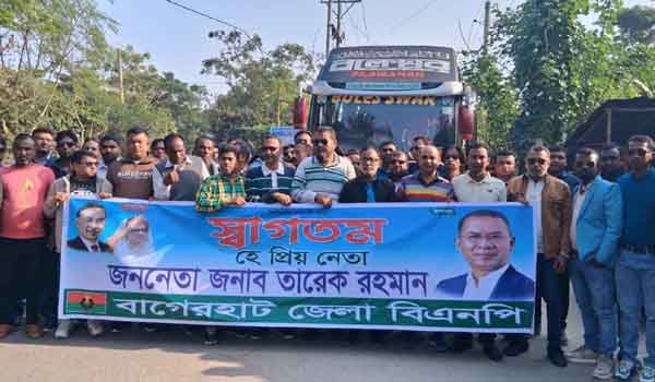এদিকে জেলা ছাত্রদলের নেতা শেখ আল মামুন বলেন,দীর্ঘদিন পর আমাদের প্রাণের নেতা দেশে ফিরছেন। তাকে স্বাগত জানাতে ছাত্রদল সম্পূর্ণ প্রস্তুত। বাগেরহাট জেলা ছাত্রদলের প্রায় দুই হাজার নেতাকর্মী ঢাকায় অনুষ্ঠিত গণসংবর্ধনা অনুষ্ঠানে অংশ নেবে।