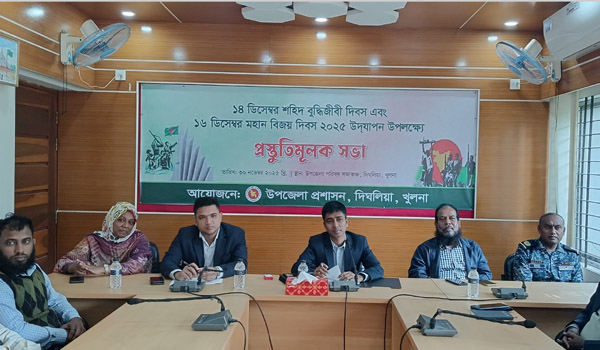 খুলনার দিঘলিয়ায় বুদ্ধিজীবী দিবস ও মহান বিজয় দিবস পালন উপলক্ষে প্রস্তুতিমূলক সভা রবিবার (৩০ নভেম্বর) সকাল ১১ টায় উপজেলা কনফারেন্স রুমে উপজেলা নিবার্হী অফিসার মোঃ হারুন অর রশিদ এর সভাপতিত্বে অনুষ্ঠিত হয়।