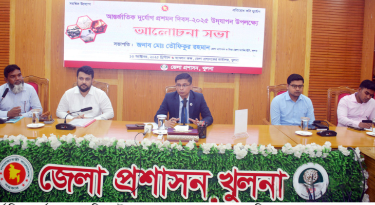দিবসটি উপলক্ষ্যে সকালে খুলনা জেলা প্রশাসকের সম্মেলনকক্ষে আলোচনা সভায় সভাপতির বক্তৃতায় জেলা প্রশাসক মোঃ তৌফিকুর রহমান বলেন, প্রাকৃতিক দুর্যোগের পাশাপাশি মানবসৃষ্ট দুর্যোগ রয়েছে। দুর্যোগ আসলে মানুষের ভোগান্তির সীমা থাকে না।