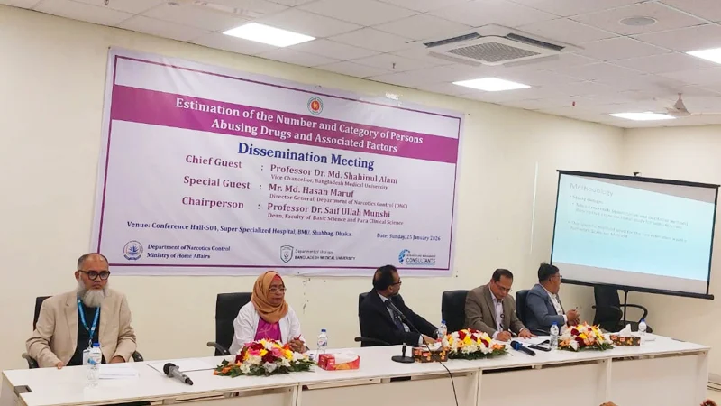 আজ রোববার রাজধানীর শাহবাগে একটি সুপার স্পেশালাইজড হাসপাতালের কনফারেন্স হলে ‘বাংলাদেশে মাদক অপব্যবহারকারী ব্যক্তিদের সংখ্যা, ধরণ ও সংশ্লিষ্ট কারণসমূহ’ শীর্ষক গবেষণার ফলাফল প্রকাশ অনুষ্ঠানে এসব তথ্য জানানো হয়। মাদকদ্রব্য নিয়ন্ত্রণ অধিদপ্তরের অর্থায়নে গবেষণাটি পরিচালিত হয়।