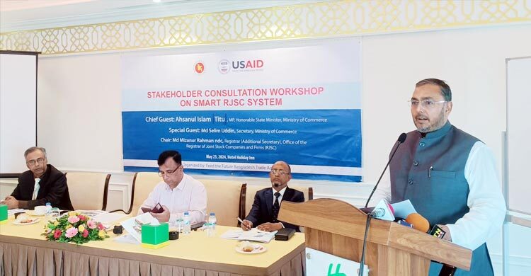 বৃহস্পতিবার (২৩ মে) রাজধানীর একটি হোটেলে বাণিজ্য মন্ত্রণালয়ের যৌথমূলধন কোম্পানি ও ফার্মসমূহের পরিদপ্তরের (আরজেএসসি) নতুন অনলাইন সিস্টেম ‘স্মার্ট আরজেএসসি’ বিষয়ক কর্মশালায় এসব কথা বলেন তিনি।