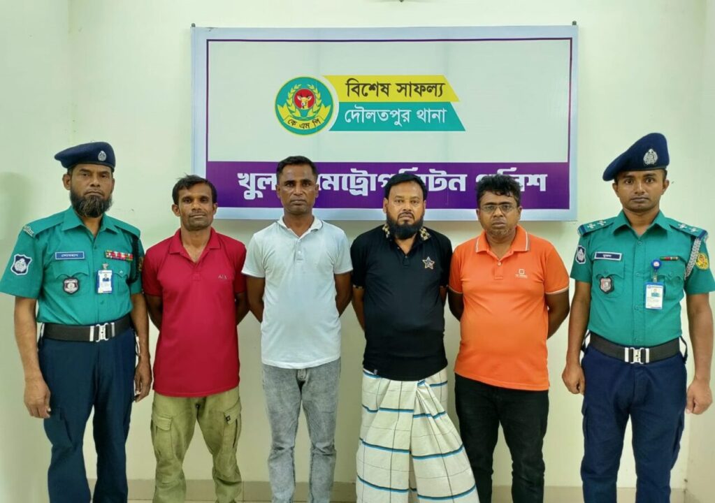 গত ৯ এপ্রিল রাতে খুলনা মেট্রোপলিটন পুলিশ ও সেনাবাহিনী যৌথ অভিযান পরিচালনা করে দৌলতপুর থানাধীন বাংলার মোড় জনৈক কাওছার মিয়ার বাড়ি থেকে জুয়া খেলার সময় জুয়াড়ি ১) হারুন শেখ (৪০), পিতা-মৃত: হোসেন শেখ, সাং-নয়াবাটি, ২) লিটন গাজী (৫৭), পিতা-মৃত: মোফজ্জল গাজী, সাং-নয়াবাটি, ৩) নাসির (৪৫), পিতা-মৃত: আশরাফ আলী মোড়ল, সাং-চিত্রালী বাজার, ৪) আবুল হাসনাত @ রুবেল (৪৫), পিতা-মোঃ আবুল খায়ের, সাং-হাউজিং বাজার, সর্ব থানা-খালিশপুর, খুলনা’দেরকে আটক করে। তাদের নিকট হতে জুয়া খেলায় ব্যবহৃত ২ সেট প্লেয়িং কার্ড (তাস) এবং নগদ ৪৪ হাজার ৬৫০ টাকা জব্দ করা হয়। গ্রেফতারকৃত আসামীদের বিরুদ্ধে জুয়া আইনে মামলা রুজু করা হয়েছে।