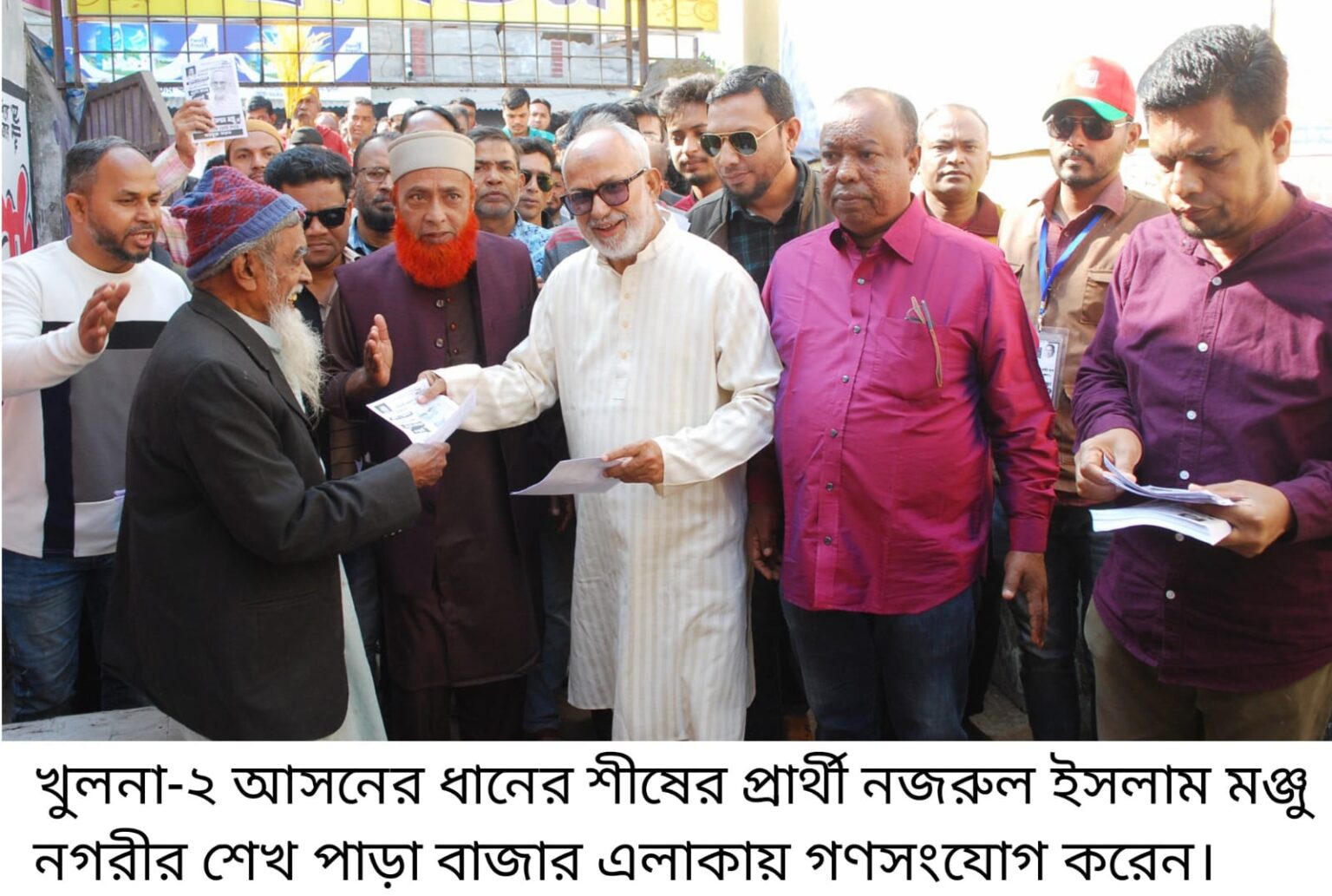 রবিবার (৮ ফেব্রুয়ারি ) সকাল সাড়ে ৯টায় শেখপাড়া বাজার, লোহাপট্রিসহ বিভিন্ন এলাকায় গণসংযোগ ও লিফলেট বিতরন করেন খুলনা-২ আসনে বিএনপি মনোনীত ধানের শীষের প্রার্থী সাবেক এমপি নজরুল ইসলাম মঞ্জু। সকাল সাড়ে ১০টায় জোড়াগেট এলাকায় ওয়ার্ড নির্বাচন কমিটির আয়োজনে উঠান বৈঠকে প্রধান অতিথির বক্তব্য রাখেন তিনি।পরে সকাল সাড়ে ১১টায় খুলনা বড়বাজার এলাকায় গণসংযোগ, লিফলেট বিতরন ও ব্যবসায়ীদের সঙ্গে শুভেচ্ছা বিনিময় করেন।