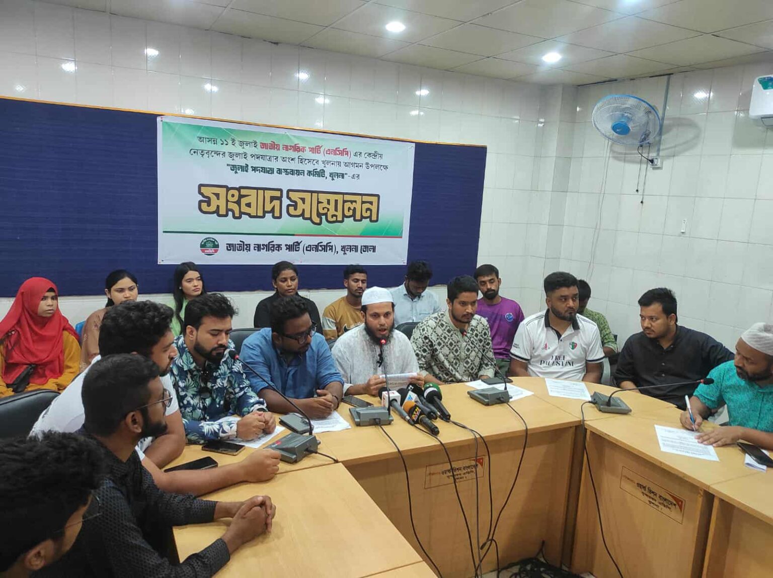 জাতীয় নাগরিক পার্টি (এনসিপি) আগামী ১১ জুলাই (শুক্রবার) খুলনায় আয়োজন করতে যাচ্ছে একটি ঐতিহাসিক পদযাত্রা। “পরিবর্তনের বার্তা” ছড়িয়ে দিতে এই পদযাত্রা অনুষ্ঠিত হবে বলে জানিয়েছেন দলটির নেতারা। পদযাত্রা সফল করতে মঙ্গলবার বেলা সাড়ে এগারটায় খুলনা প্রেসক্লাবে এক সংবাদ সম্মেলনের আয়োজন করা হয়। সংবাদ সম্মেলনে উপস্থিত ছিলেন এনসিপি খুলনা জেলা শাখার প্রধান সমন্বয়ক হাফেজ মাওলানা মাহমুদুল হাসান (ফয়জুল্লাহ) ও পদযাত্রা বাস্তবায়ন কমিটির সদস্য সচিব ডা. মোঃ আব্দুল্লাহ চৌধুরি।