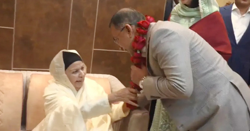 পরে তিনি কুশল বিনিময় করেন শাশুড়ি সৈয়দা ইকবাল মান্দ বানুর সঙ্গে। এসময় মেয়ের জামাইকে গোপাল ফুলেল মালা পরিয়ে বরণ করেন তিনি।