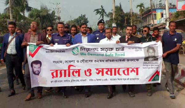 বাগেরহাটে ‘নিরাপদ সড়ক চাই–এর ৩২তম প্রতিষ্ঠাবার্ষিকী উপলক্ষে র্যালী ও আলোচনা সভা অনুষ্ঠিত হয়েছে। সোমবার (১ ডিসেম্বর) সকালে বাসস্ট্যান্ড এলাকায় র্যালী শেষে দ্যা সুইট প্যালেজ হোটেলের সম্মেলন কক্ষে আলোচনা সভা হয়। র্যালীতে অতিরিক্ত জেলা প্রশাসক মোঃ মমিনুর রহমান, অতিরিক্ত পুলিশ সুপার (সদর সার্কেল) মোঃ শামিমসহ বিভিন্ন শ্রেণি–পেশার মানুষ অংশ নেন।