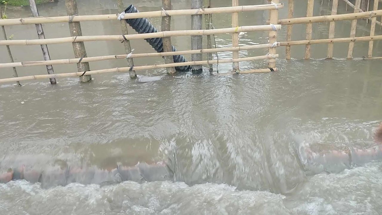 একই এলাকার ঘের ব্যবসায়ী ডালিম শেখ বলেন, জোয়ারের পানির চাপ এতটাই প্রবল ছিল যে মুহূর্তের মধ্যেই আমার ঘের পানিতে তলিয়ে যায়। রাত থেকে আমার ঘেরসহ এখানকার প্রায় অর্ধশত মাছের ঘের পানিতে তলিয়ে আছে।