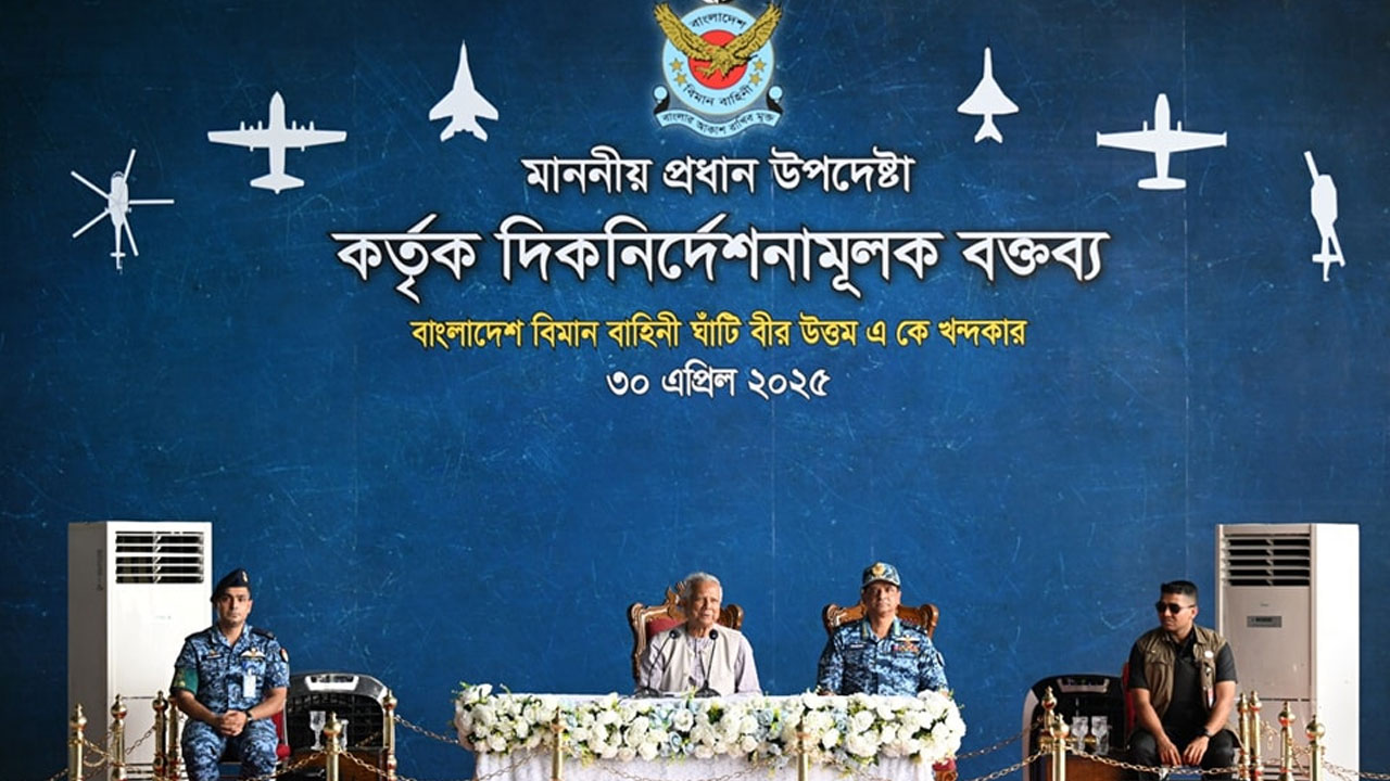 ‘বিমান বাহিনীতে ভবিষ্যতে অত্যাধুনিক যুদ্ধবিমান, হেলিকপ্টার, পরিবহন বিমান, রেডার, সারফেস টু এয়ার মিসাইল, ইউএবি সংযোজনে সরকার বিমান বাহিনীকে সর্বাত্মক সহযোগিতা প্রদান করবে’- বলেন প্রধান উপদেষ্টা।