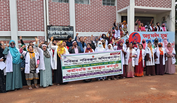 আজ বুধবার (০৩ ডিসেম্বর) বেলা ১১ টায় সারাদেশে এ কর্মচারীদের কেন্দ্রীয় কর্মসূচি অংশ হিসাবে মোরেলগঞ্জ উপজেলা পরিবার পরিকল্পনার অফিসের সামনে পরিবার কল্যান পরিদর্শীকা পরিবার কল্যান সহকারী ও পরিবার পরিকল্পনা পরিদর্শক মাঠ পর্যায়ের নারী-পুরুষ কর্মচারীরা ৩ ঘন্টা অবস্থান কর্মসূচি পালন করেন। এ সময় বিক্ষোভকারীরা স্বাস্থ্য শিক্ষা ও পরিবার কল্যান মন্ত্রনালয়ের অধীন পরিবার পরিকল্পনা অধিদপ্তরের উর্দ্ধতন কর্মকর্তাদের প্রতি জোর দাবী জানান, বৈষম্য দূরিকরনের মাধ্যমে অতি দ্রæত নিয়োগবিধি ২০২৪ বাস্তবায়ন করতে হবে। যতক্ষন পর্যন্ত তাদের এ দাবী বাস্তবায়ন না হবে ততক্ষন পর্যন্ত তারা ঘরে ফিরে যাবে না। ২ নভেম্বর থেকে ১১ নভেম্বর পর্যন্ত তাদের এ কর্মবিরতী ও অবস্থান কর্মসূচি অব্যহত থাকবে। প্রয়োজনে লাগাতার কর্মসূচি দিবেন মাঠ পর্যায়ের এ কর্মচারীরা।