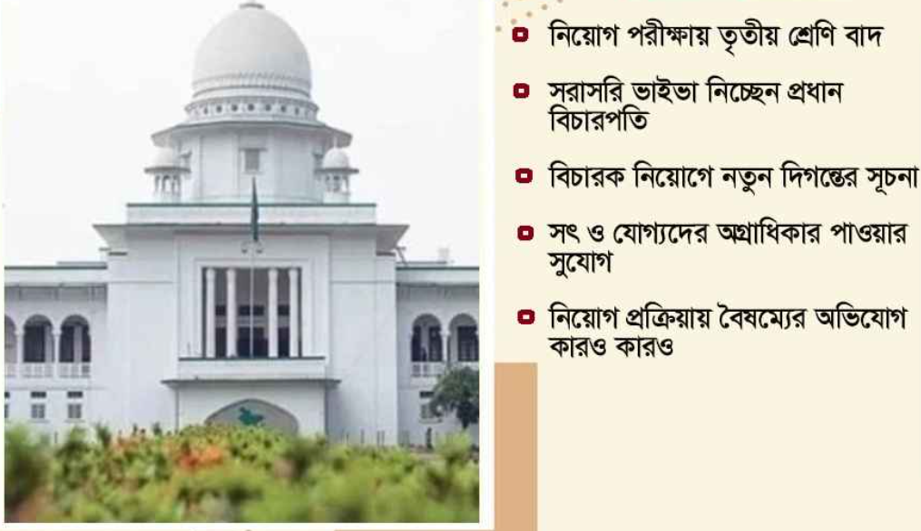 গত বছরের ৫ আগস্ট দেশে রাজনৈতিক পটপরিবর্তনের পর বিচার বিভাগে একটি পরিবর্তনের ছোঁয়া লেগেছে। এর অংশ হিসেবে বিচারক নিয়োগের বিষয়টি রাজনৈতিক প্রভাব ও সুপারিশমুক্ত করার উদ্যোগ নেওয়া হয়। সেই ধারাবাহিকতায় নির্ধারিত আইনের মাধ্যমে সুপ্রিম কোর্টের হাইকোর্ট বিভাগে বেশ কিছুসংখ্যক ‘অতিরিক্ত বিচারক’ নিয়োগের প্রক্রিয়া চলছে। এতে রাজনৈতিক প্রভাবমুক্ত বিচারক পাওয়ার আশা করছেন সংশ্লিষ্টরা।