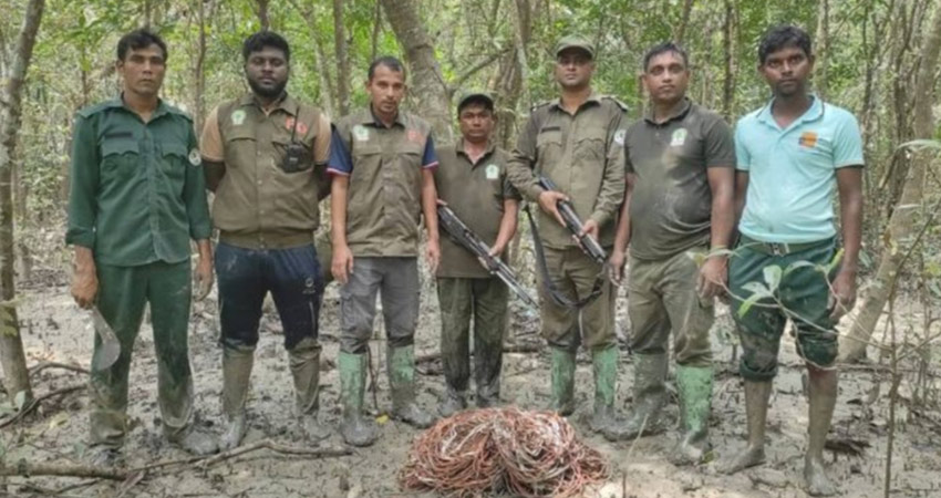 বাগেরহাটের পূর্ব সুন্দরবনে হরিণ শিকারের জন্য পাতা ফাঁদ উদ্ধার করেছে বন বিভাগ।