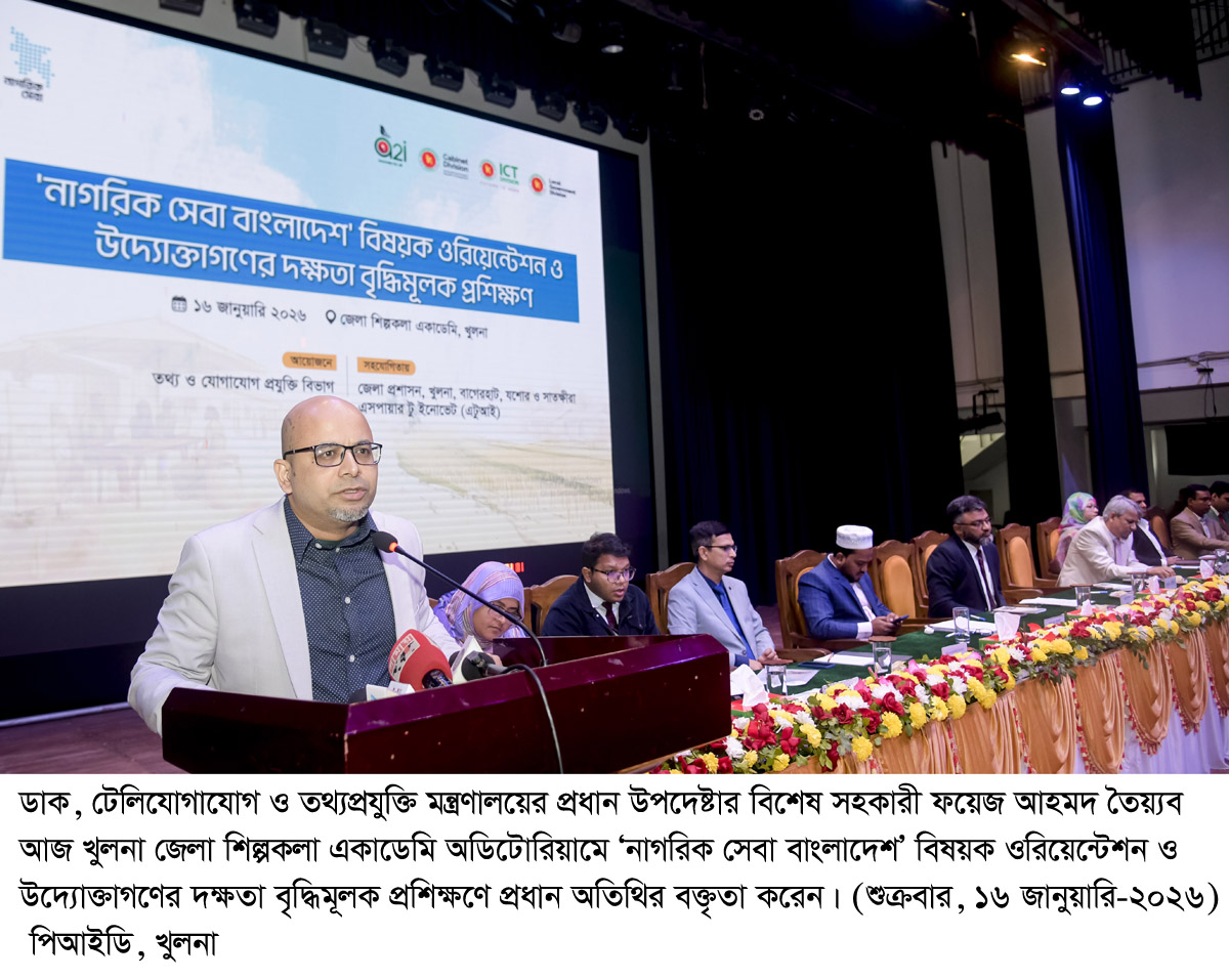 তিনি আজ (শুক্রবার) সকালে খুলনা জেলা শিল্পকলা একাডেমি অডিটোরিয়ামে ‘নাগরিক সেবা বাংলাদেশ’ বিষয়ক ওরিয়েন্টেশন ও উদ্যোক্তাগণের দক্ষতা বৃদ্ধিমূলক প্রশিক্ষণে প্রধান অতিথির বক্তৃতায় এসব কথা বলেন।