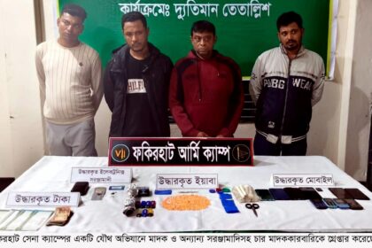 ফকিরহাট সেনা ক্যাম্পের যৌথ অভিযানে ইয়াবাসহ গ্রেপ্তার ৪