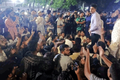 আওয়ামী লীগ নিষিদ্ধ চেয়ে মধ্যরাতে যমুনায় বিক্ষোভ