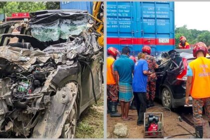 দাঁড়িয়ে থাকা কাভার্ডভ্যানে প্রাইভেটকারের ধাক্কা, বাবা-মেয়ে নিহত