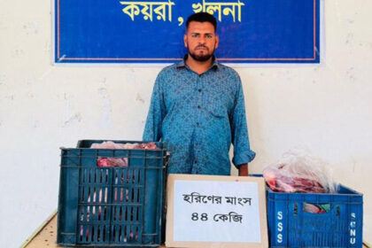 খুলনার কয়রা থানা পুলিশ ও নৌবাহিনীর যৌথ অভিযানে ৪৪ কেজি হরিণের মাংসসহ…