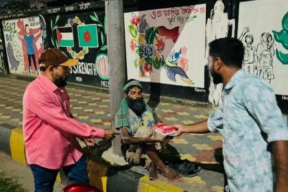 তরুণ আলো খুলনার মানবিক উদ্যোগ: অভুক্ত মানুষের মুখে একবেলা খাবার।