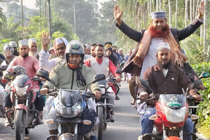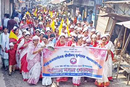 মোরেলগঞ্জে দুর্গাপ্রসন্ন পরমহংসদেবের ১৩৪ তম আবির্ভাব উৎসবে মঙ্গল শোভাযাত্রা